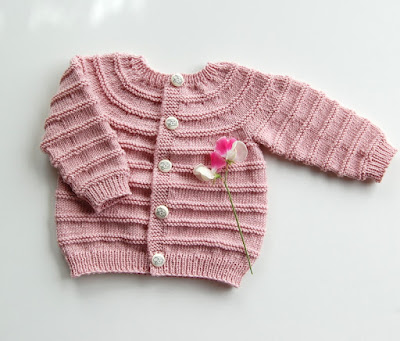 Dette er Davidjakken fra boken "Klompelompe sommerbarn". Strikket i tynn merinoull fra Sandnesgarn.